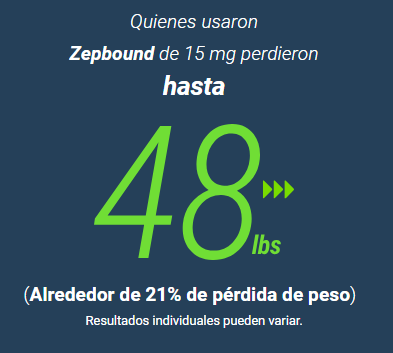 Con ZEPBOUND tu apetito disminuye, comes menos, bajas de peso sin dietas ni rutinas pesadas hasta un 22% en pocos meses.